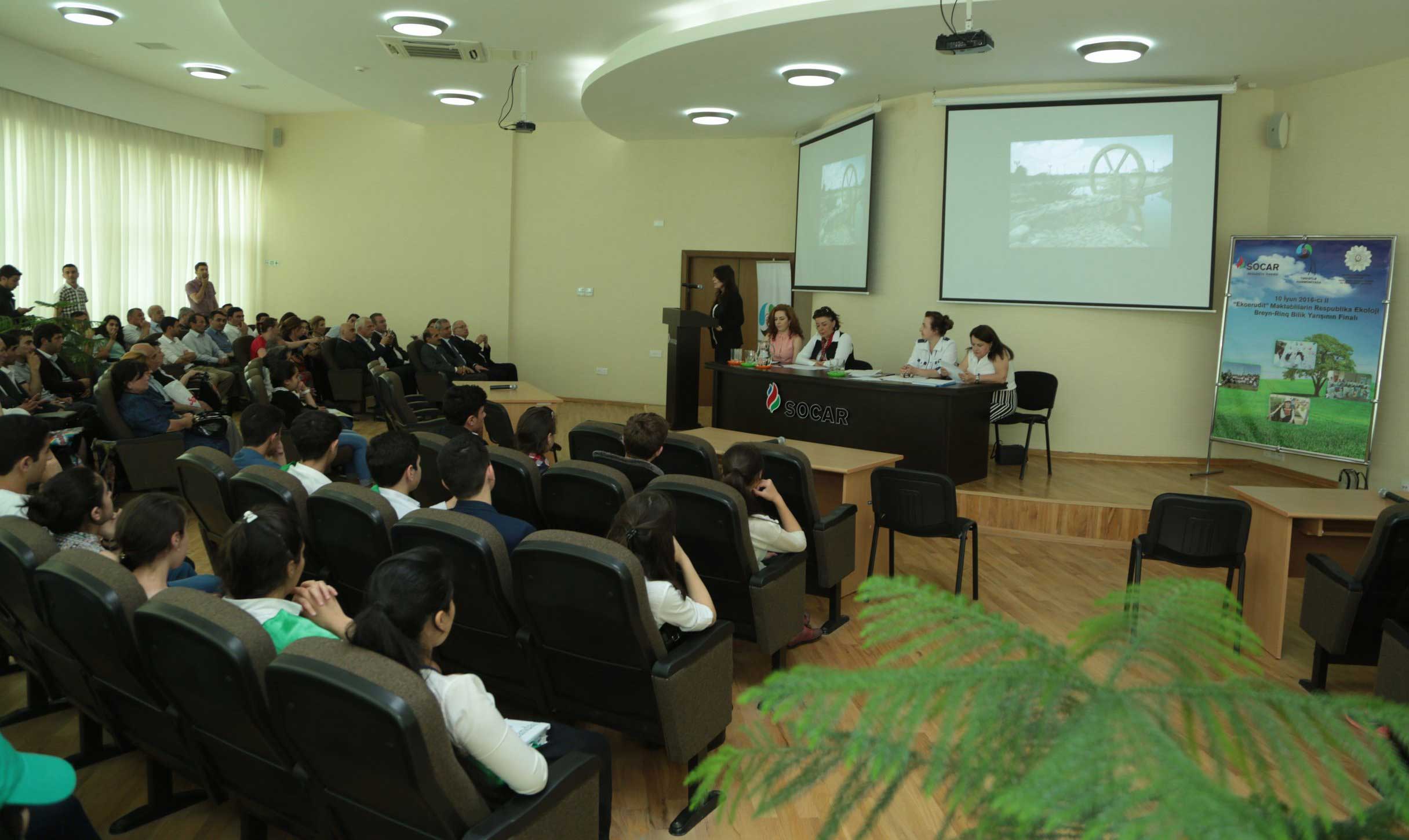 Təhsil Nazirliyi Respublika Ekoloji Tərbiyə və Təcrübəçilik Mərkəzinin və Azərbaycan Respublikası Dövlət Neft Şirkətinin (SOCAR) Ekologiya İdarəsinin birgə əməkdaşlığı ilə “Ekoerudit” məktəblilərin Respublika ekoloji breyn-rinq bilik yarışları keçirilib.