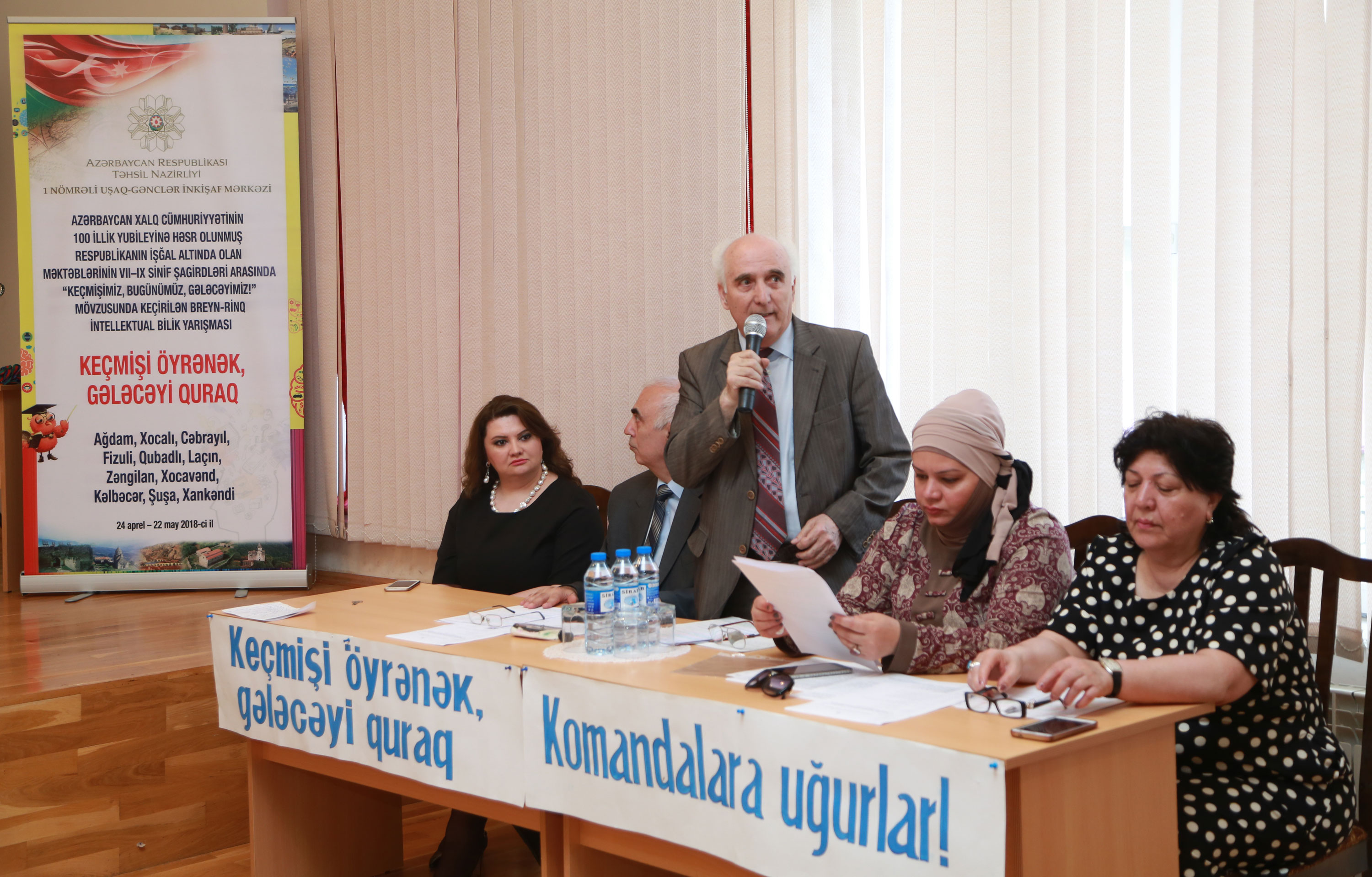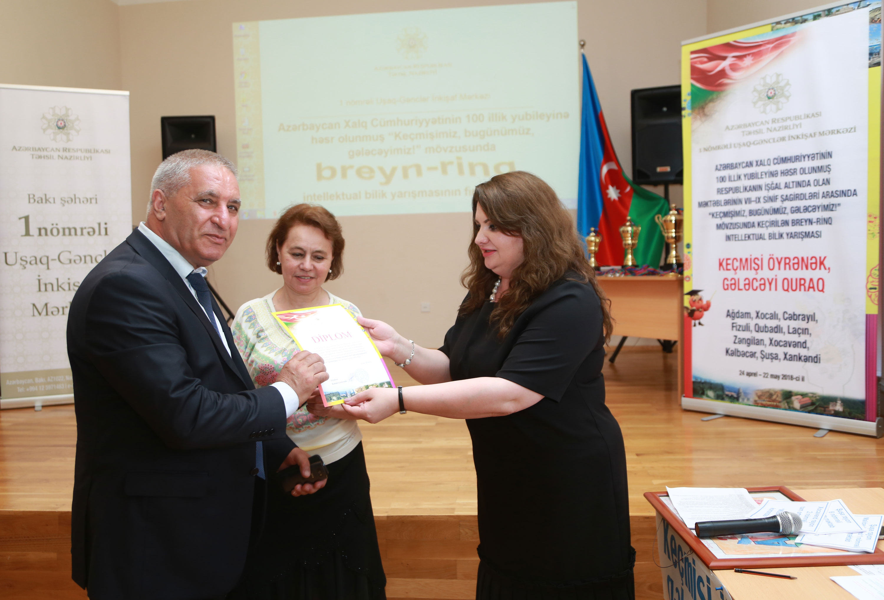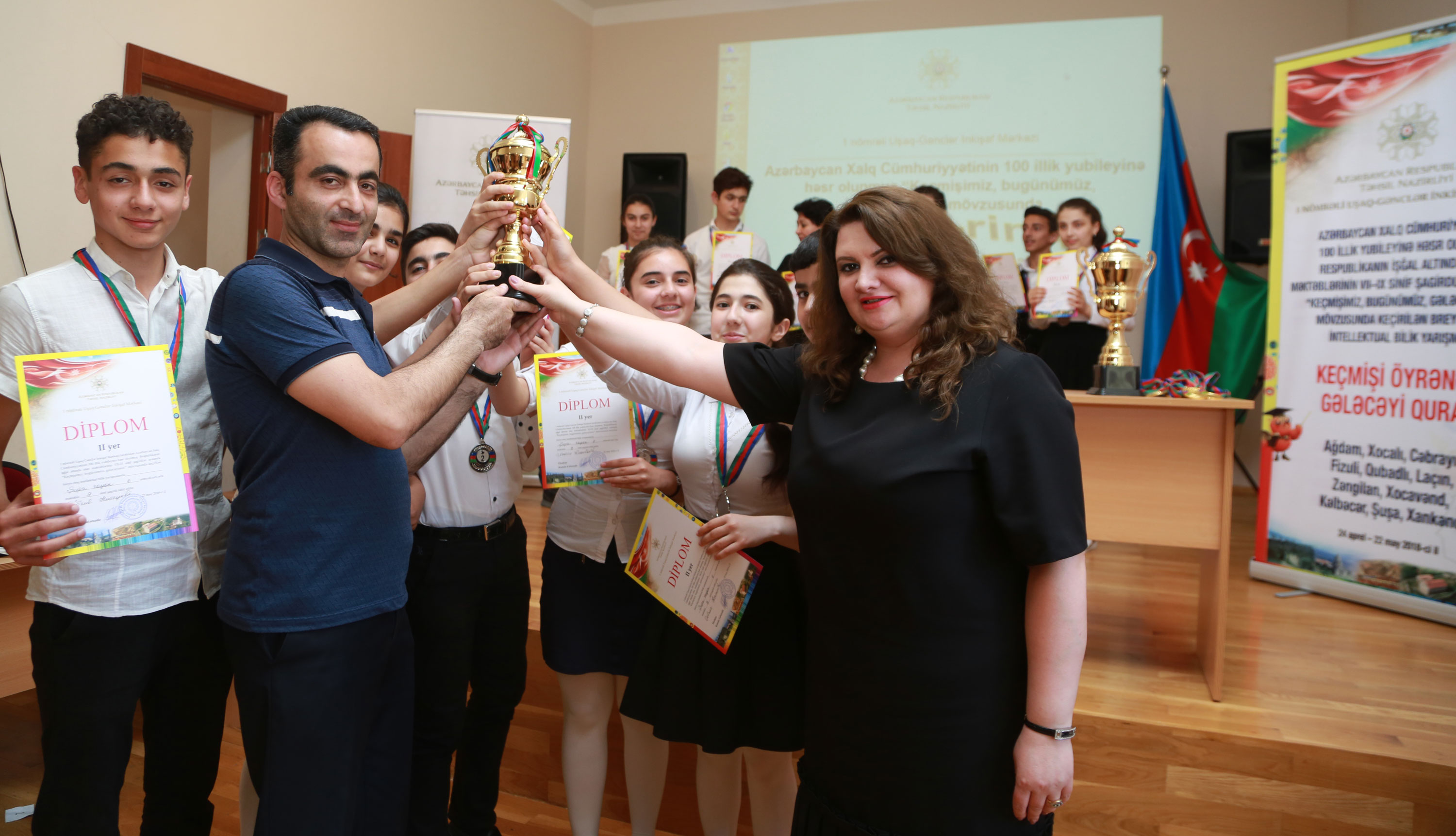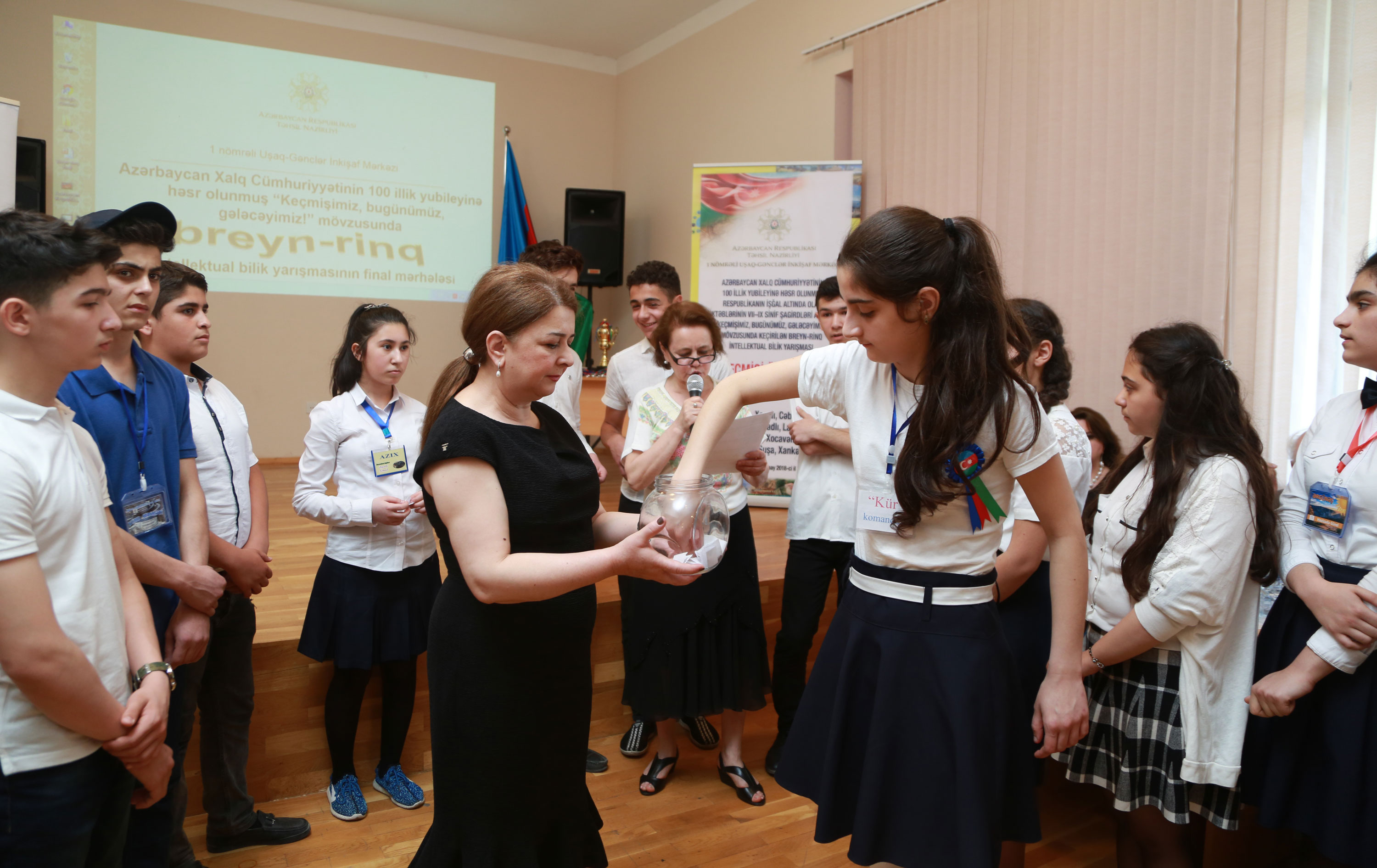 Təhsil Nazirliyinin tabeliyində fəaliyyət göstərən 1 nömrəli Uşaq-Gənclər İnkişaf Mərkəzində Azərbaycan Xalq Cümhuriyyətinin 100 illik yubileyinə həsr olunmuş “Keçmişimiz, bugünümüz, gələcəyimiz!” mövzusunda intellektual bilik yarışmasının üçüncü – final mərhələsi keçirilib. Bilik yarışmasında məcburi köçkün rayonlarının Bakıda yerləşən ümumi təhsil müəssisələrinin məktəbliləri iştirak edib.