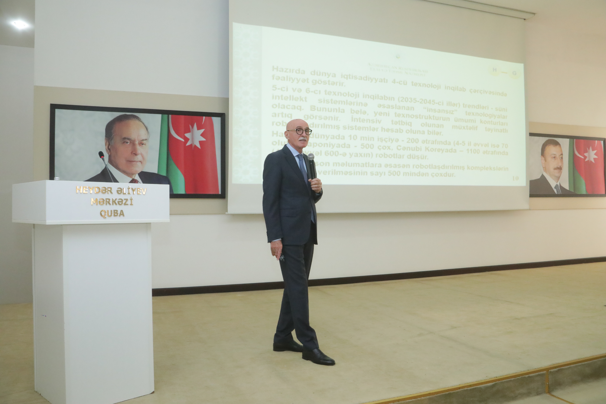 Səfərin əvvəlində nazir müavini Firudin Qurbanov Quba Rayon İcra Hakimiyyətinin başçısı İlqar Mahmudov və Quba–Xaçmaz Regional Təhsil İdarəsinin müdiri Coşqun Əliyevlə birlikdə ulu öndər Heydər Əliyevin abidəsini ziyarət edib, önünə gül dəstələri qoyub.