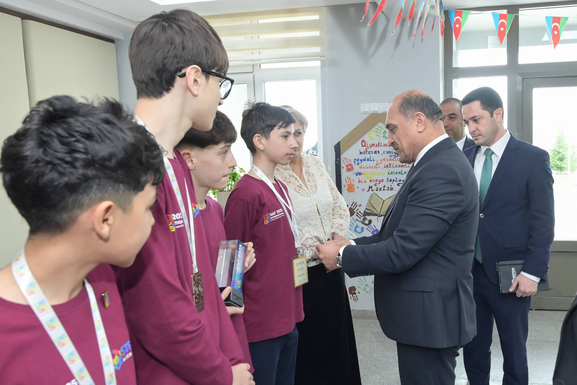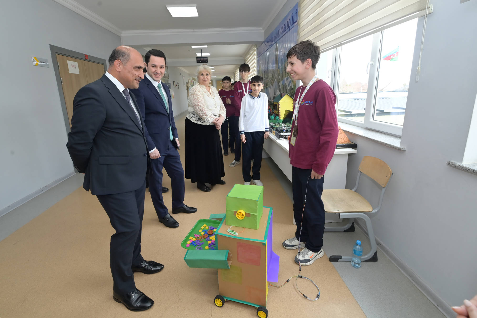 İdris İsayev məktəbdə SAF 2025 – “Sabahın alimləri” müsabiqəsinin qalibləri ilə görüşüb, şagirdlərin əl işlərindən ibarət sərgiyə baxış keçirib və peşə təmayüllü sinifdə təhsil alan şagirdlərlə söhbət aparıb. Məktəb rəhbərliyinə müvafiq tövsiyə və tapşırıqlar verilib.