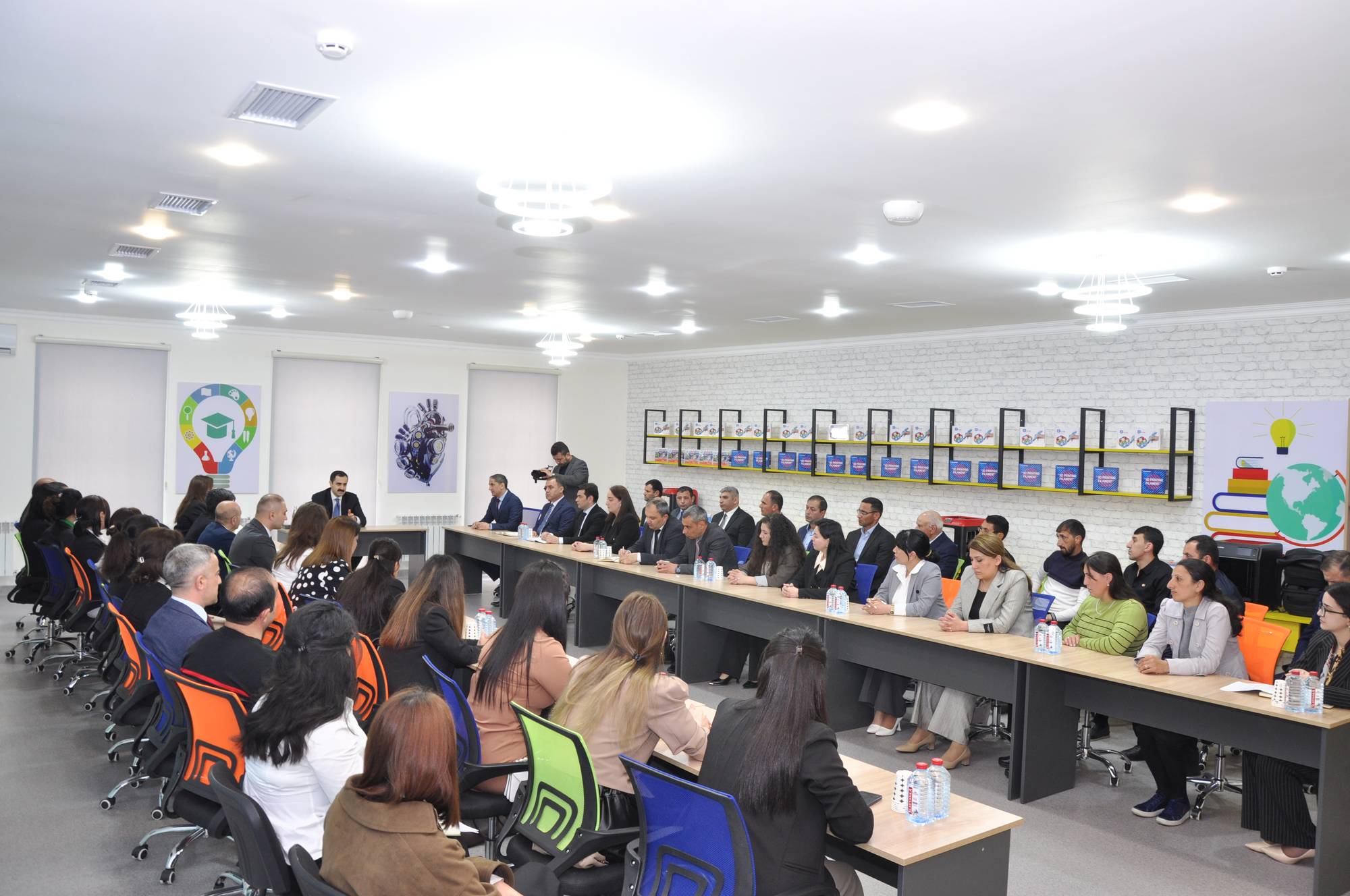 İşə qəbul və sertifikatlaşdırma imtahanlarında yüksək nəticə əldə edən müəllimlərin iştirakı ilə baş tutan görüşdə təhsilverənlərin peşəkar inkişafı, dərs keyfiyyətinin yüksəldilməsi, qiymətləndirmə meyarları, tədris prosesində innovativ yanaşmaların tətbiqi və gələcək hədəflər ətrafında fikir mübadiləsi aparılıb. Eyni zamanda tam ştatlı məşğulluq modelinin tətbiqi və sertifikasiya prosesinin tədrisin keyfiyyətinə müsbət təsiri qeyd olunub.